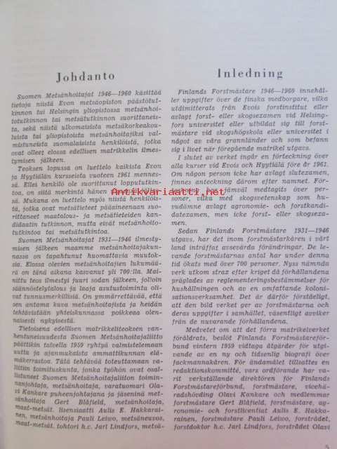 Suomen metsänhoitajat - Finlands forstmästare 1946-1960 Matrikkeli