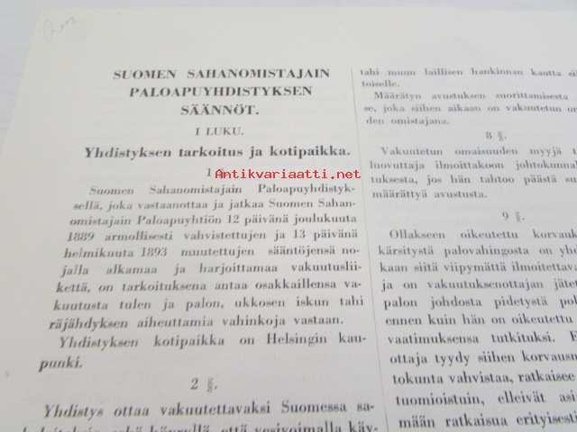 Suomen Sahanomistajain Paloapuyhdistyksen säännöt 1926