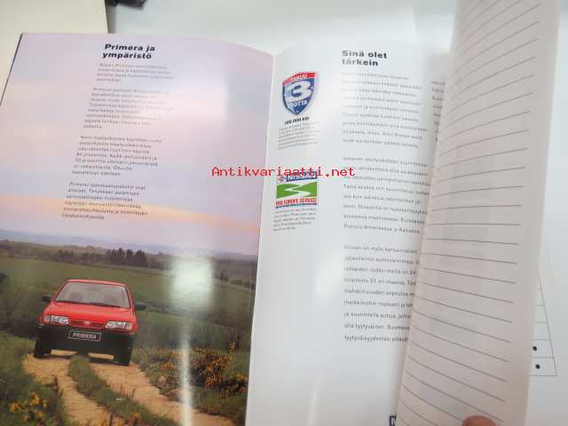 Nissan Primera 1994 -myyntiesite / brochure