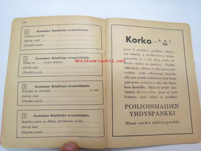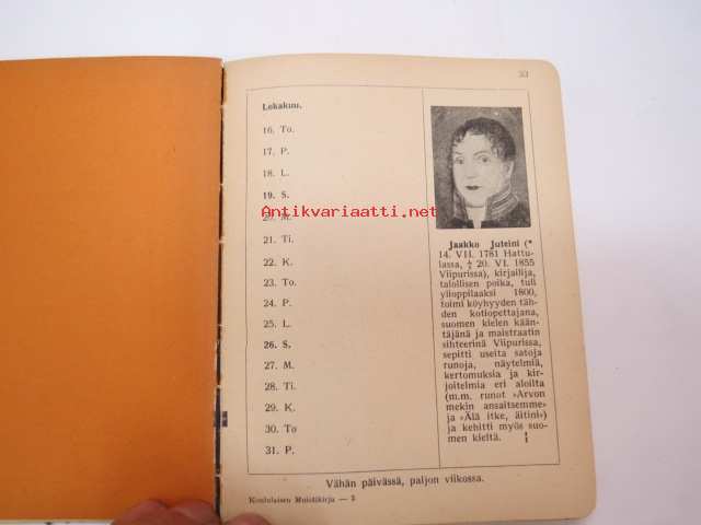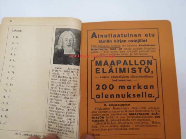 Koululaisen Muistikirja 1930-1931 -calendar / yearbook for school pupils