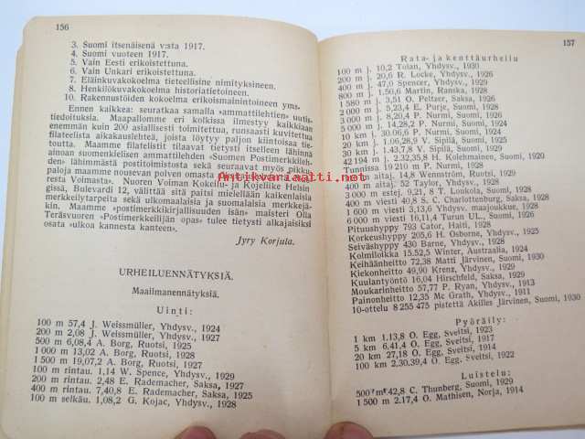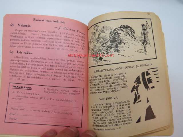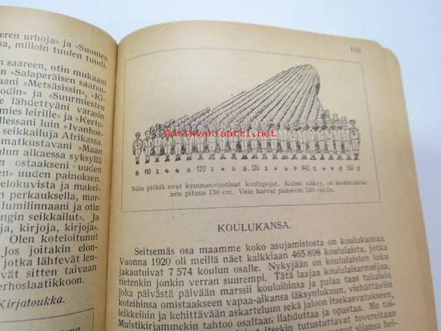 | Saatavilla | 1 kpl | | Julkaisuvuosi | 1930 | | Sivuja | 188 | | Painos | 1. | | Kunto | K2 | | Sidonta/painoasu | Nidottu (pehmeäk.) | | Kielet | Suomi |