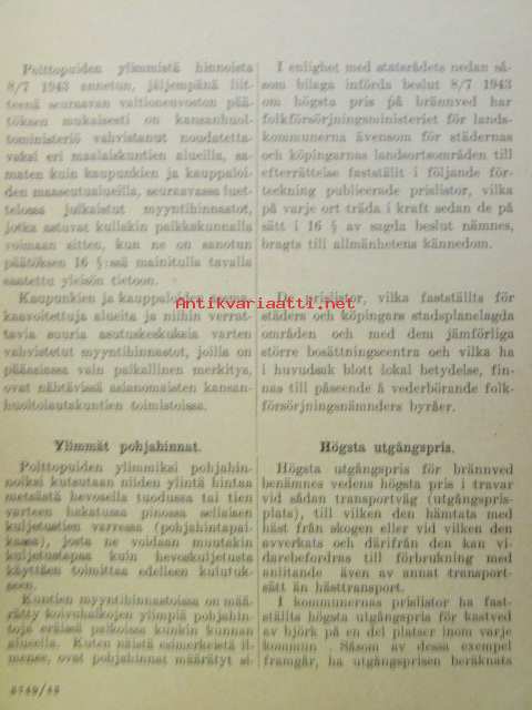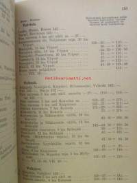 | Saatavilla | 1 kpl | | Julkaisuvuosi | 1943 | | Sivuja | 192 | | Kunto | K2 | | Sidonta/painoasu | Nidottu (pehmeäk.) | | Kielet | Suomi, Ruotsi |