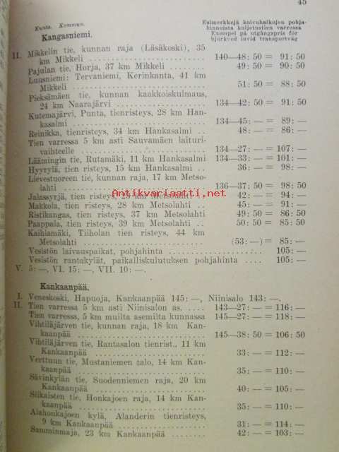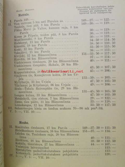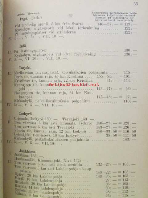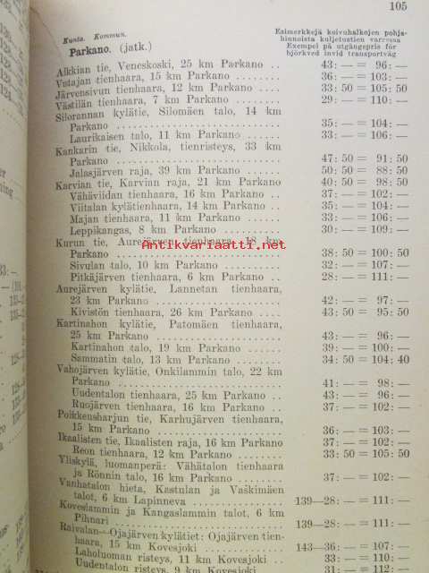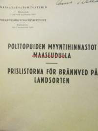 Polttopuiden myyntihinnasto maaseudulla / Prislistorna för brännved på landsorten