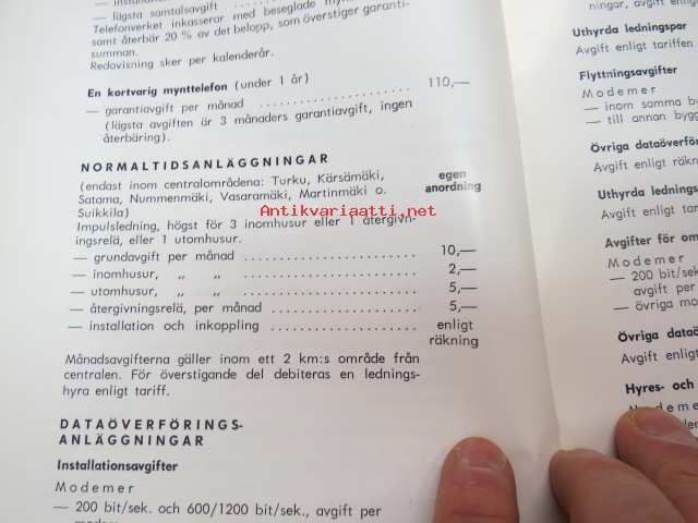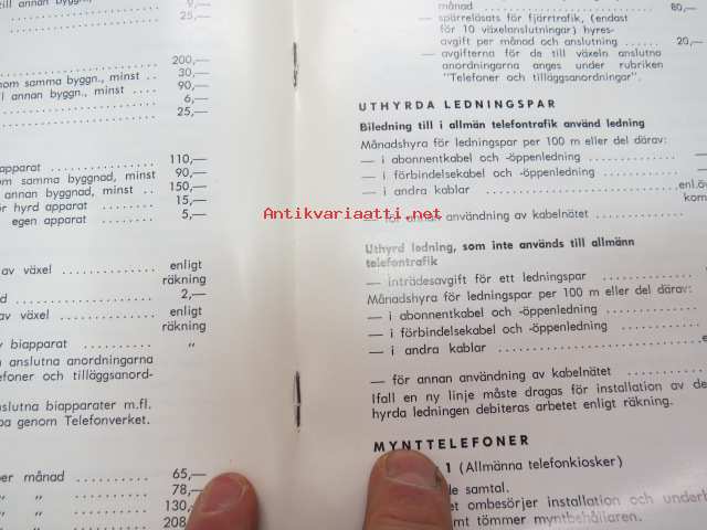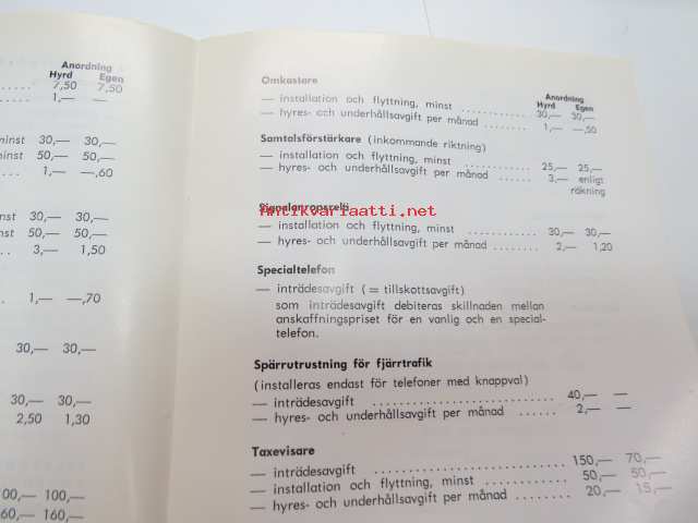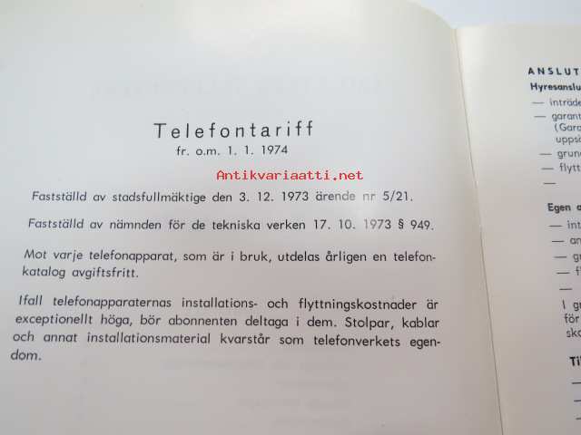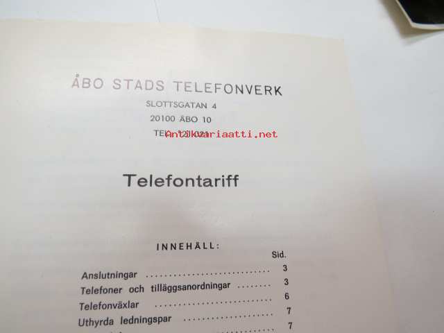 Telefontariff - Åbo stads telefonverk 1.1.1974 -telephone tariff, Turku