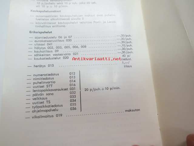 Puhelinmaksut 1.1.1974 -telephone tariff, Turku