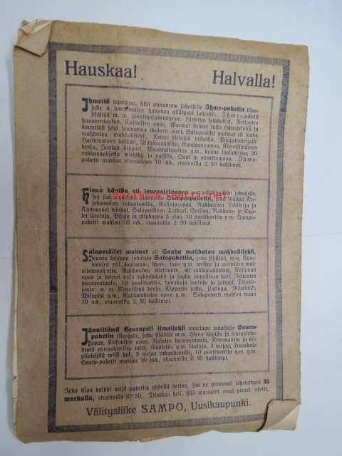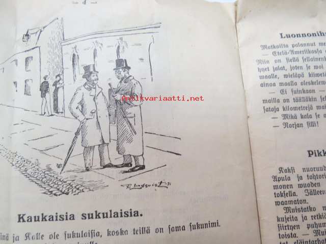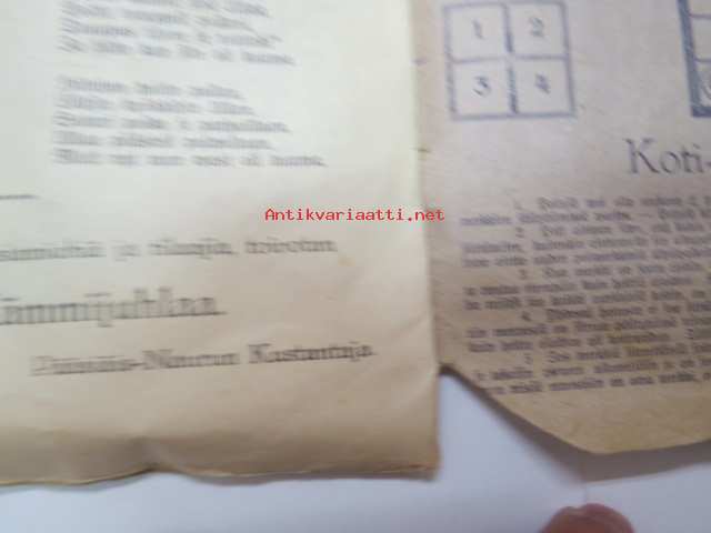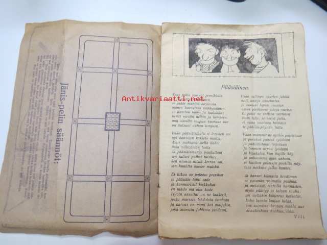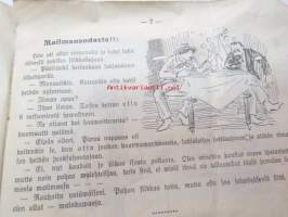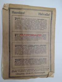| Saatavilla | 1 kpl | | Julkaisuvuosi | 1925 | | Sivuja | 16 | | Kunto | K2 | | Kulunut | | Sidonta/painoasu | Nidottu (pehmeäk.) | | Kielet | Suomi |