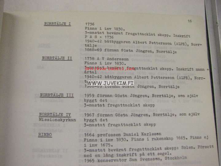 Berg Jonas, Statens Sjöhistoriska Museum, 1969A-4 kokoinen monistettu tutkimus kirkkolaivoista.