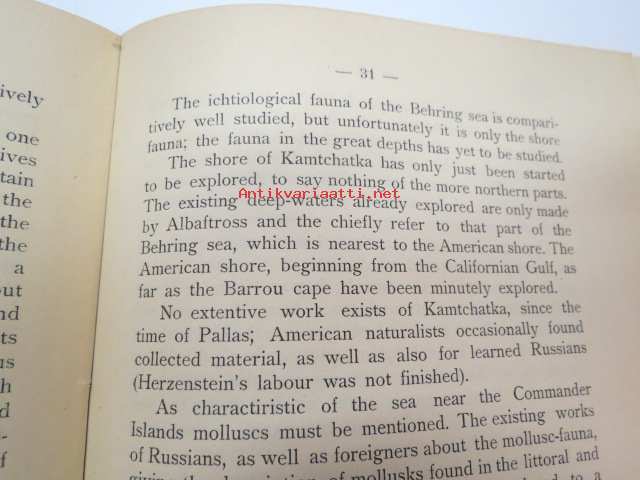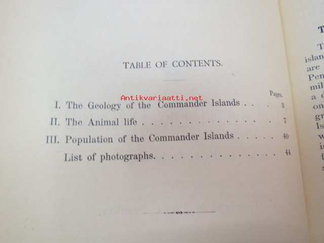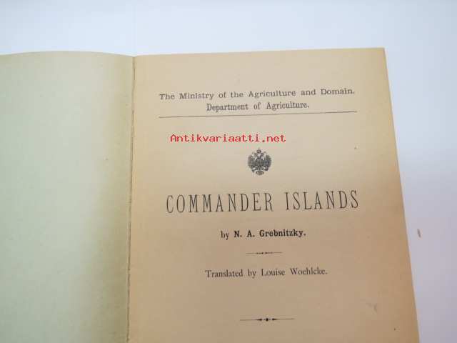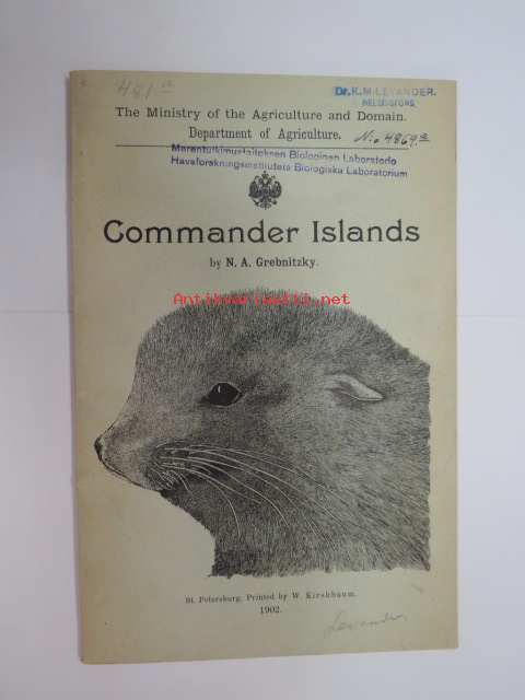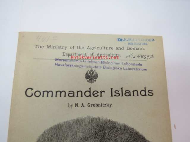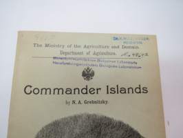 Commander Islands (Командо́рские острова́, Komandorskiye ostrova) (Kamtsatkan niemimaa) - saarten geologiaa, eläimistöä ja asukkaita esittelevä kirja -russian scientific report of geology, animal life, population