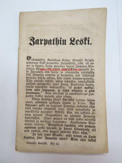 Zarpathin Leski. -uskonnollinen kirjoitus v. 1855 (Lukemisia kansalle nr 43) -religious pamphlet