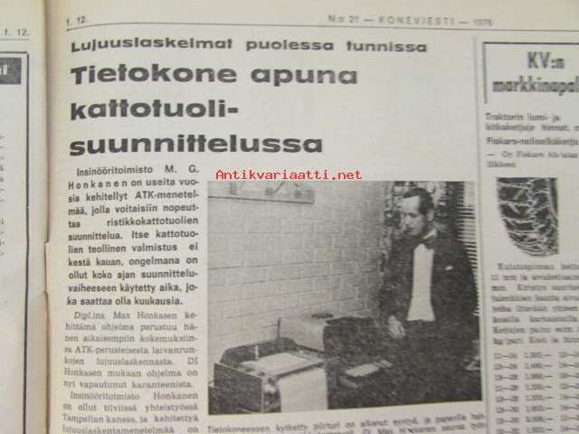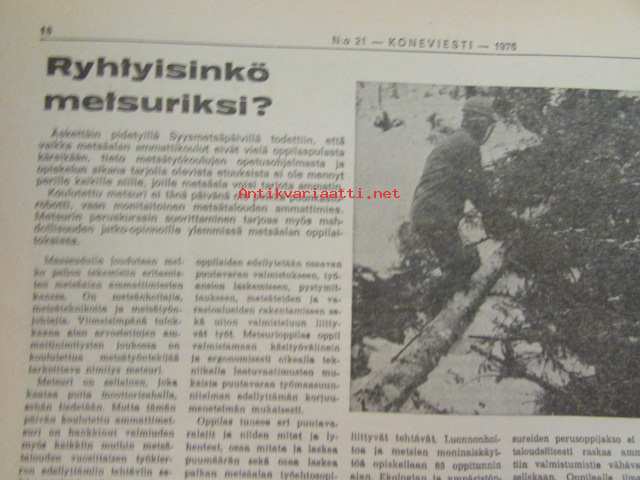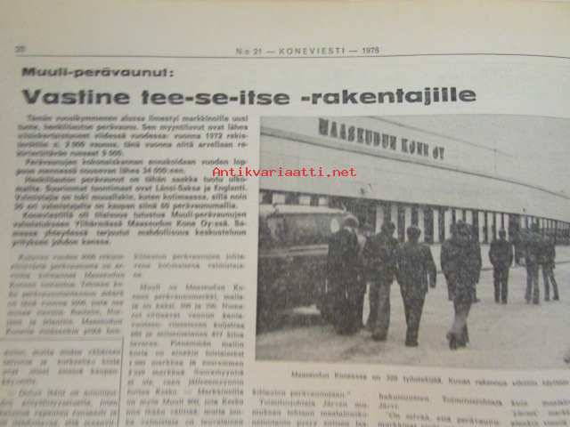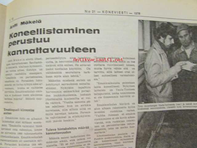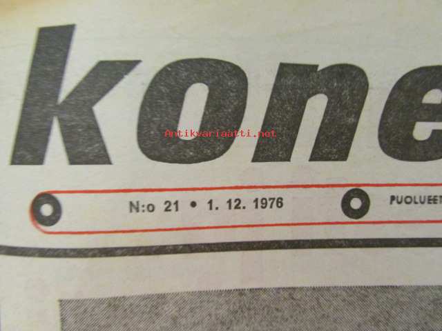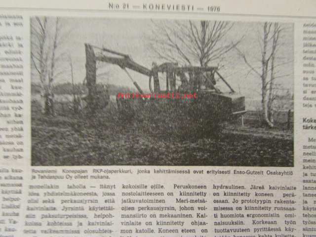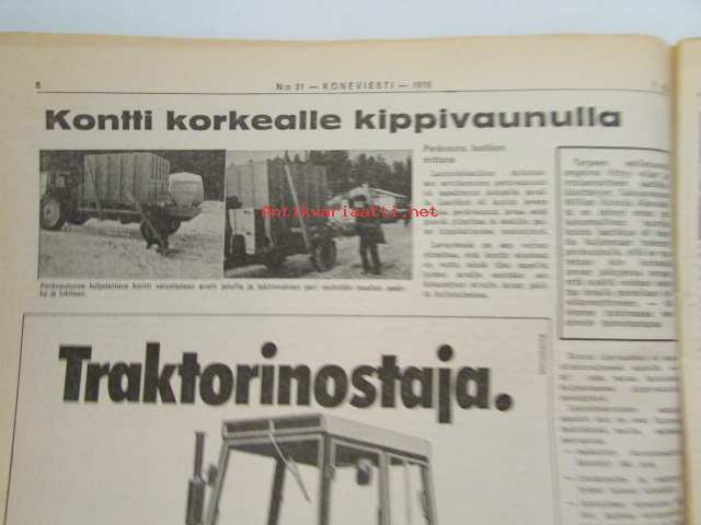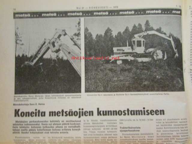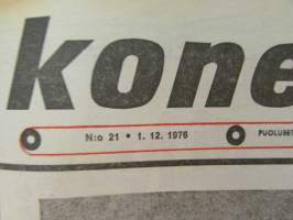Koneviesti 1976 nr 21, sis. mm. seur. artikkelit / kuvat / mainokset; Kontti korkealle kippivaunulla, HOrsman konetehtaan Emma levittää lannan, Koneita metsäojien kunnostamiseen Perko ja RKP-ojakaivuri, Moottorin laakerin korjaus XIII, katso sisältö kuvista tarkemmin.