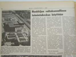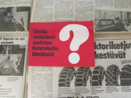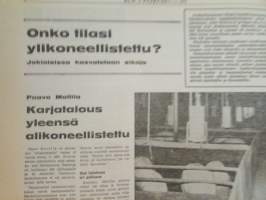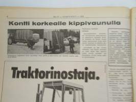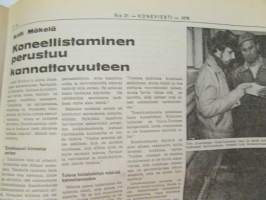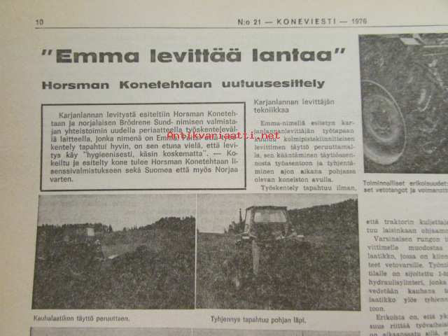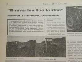 Koneviesti 1976 nr 21, sis. mm. seur. artikkelit / kuvat / mainokset; Kontti korkealle kippivaunulla, HOrsman konetehtaan Emma levittää lannan, Koneita
