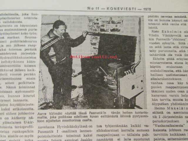 Koneviesti 1976 nr 11, sis. mm. seur. artikkelit / kuvat / mainokset; DLG -76 München, Normet pikakytkentälaitteiden asennus, Pasmatik täyshydraulinen