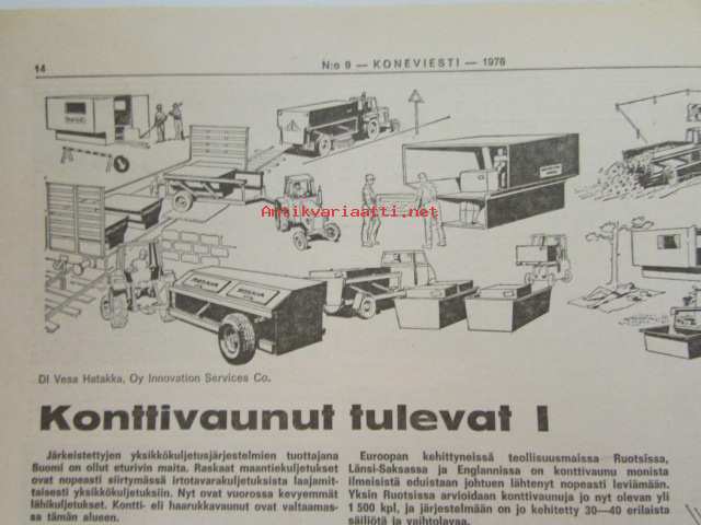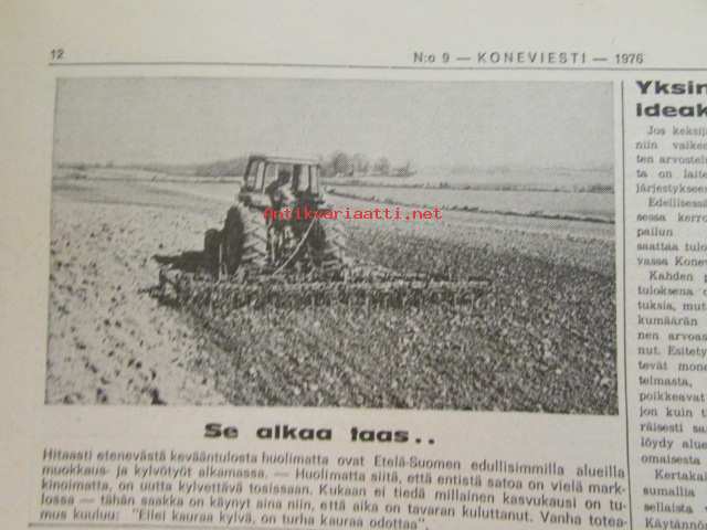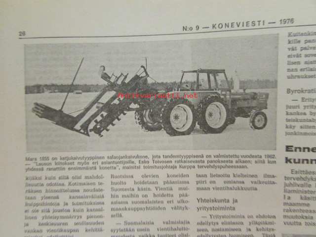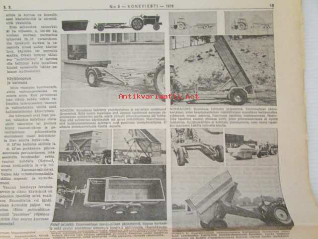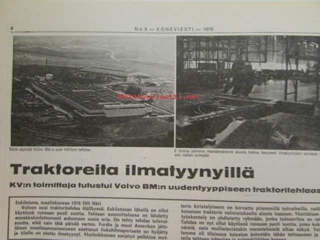 Maaseudun Ammattilehti Oy, 1976Koneviesti 1976 nr 9, sis. mm. seur. artikkelit / kuvat / mainokset; Traktoreita ilmatyynyillä Volvo BM, Konttivaunut tulevat, koneviesti testaa Jobu (Jo-Bu) LP 4, Uusi telaratkaisu Merko-traktorissa, katso sisältö kuvista tarkemmin.