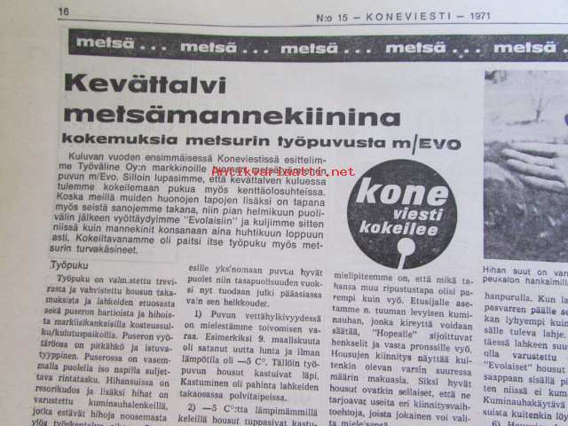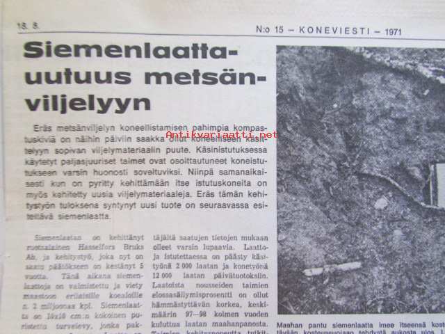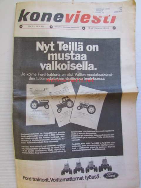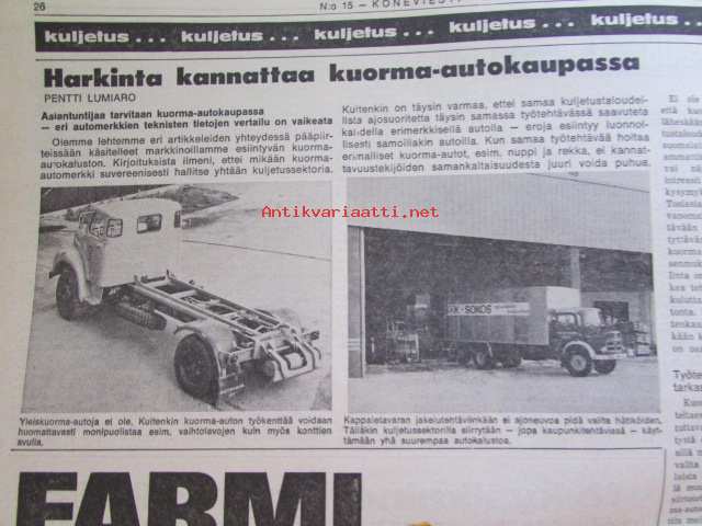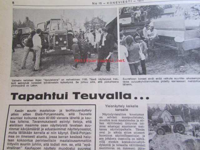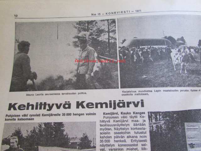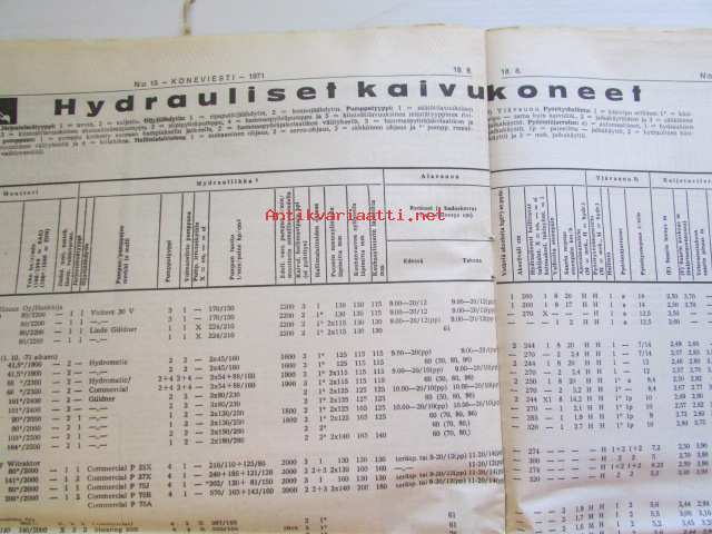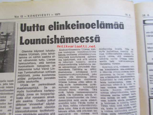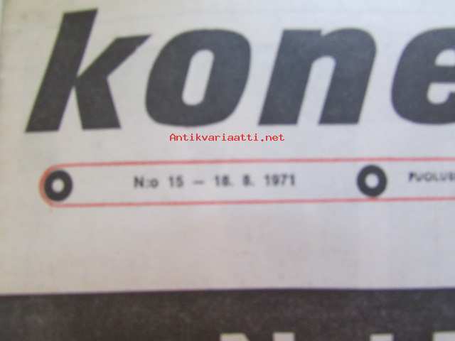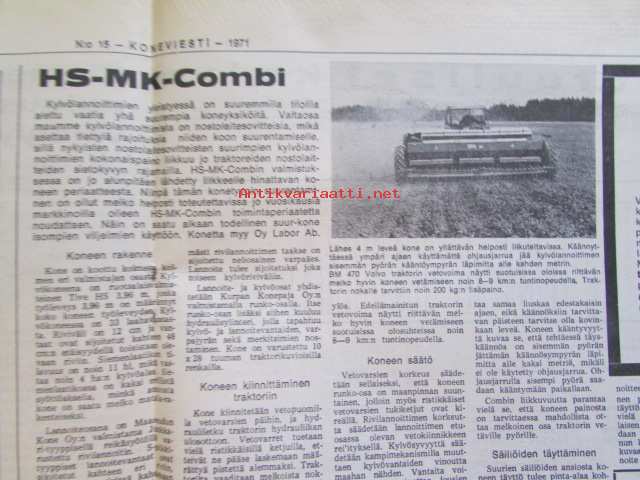 Maaseudun Ammattilehti Oy, 1971Koneviesti 1971 nr 15, sis. mm. seur. artikkelit / kuvat / mainokset; Lannanpoistoa myyränkekomenetelmällä, Kehittyvä Kemijärvi, HS-MK-Combi kylvölannoitin, Hydrauliset kaivinkoneet 1971 tekniset tiedot, Uudet Saab 95 / 96 / 99, katso sisältö kuvista tarkemmin.