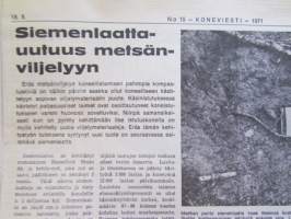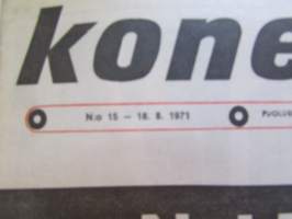 Koneviesti 1971 nr 15, sis. mm. seur. artikkelit / kuvat / mainokset; Lannanpoistoa myyränkekomenetelmällä, Kehittyvä Kemijärvi, HS-MK-Combi kylvölannoitin,