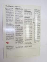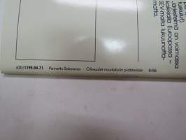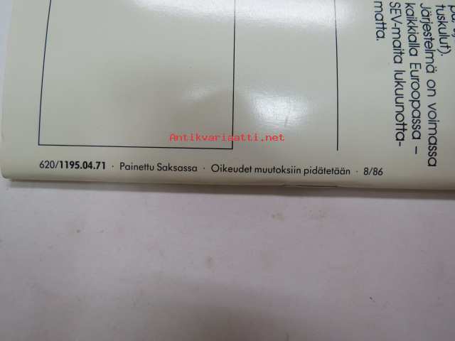 | Saatavilla | 2 kpl | | Julkaisuvuosi | 1986 | | Sivuja | 38 + erilinen tekniset tiedot | | Kunto | K3 | | Sidonta/painoasu | Nidottu (pehmeäk.) | | Kielet | Suomi |