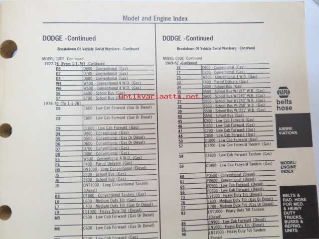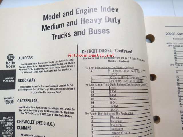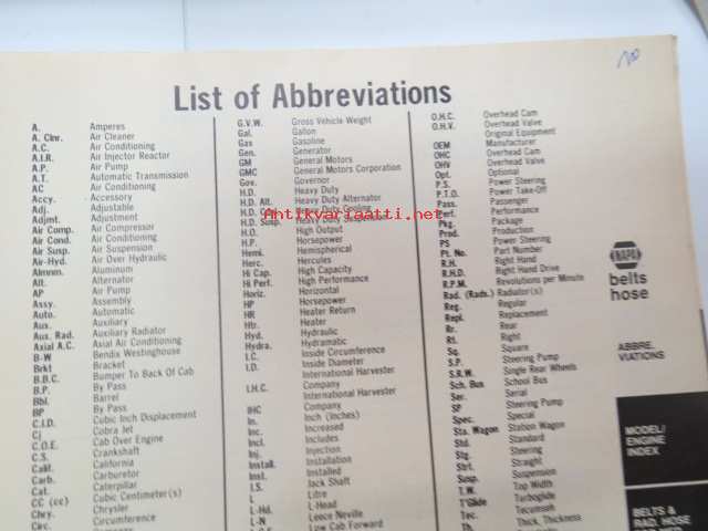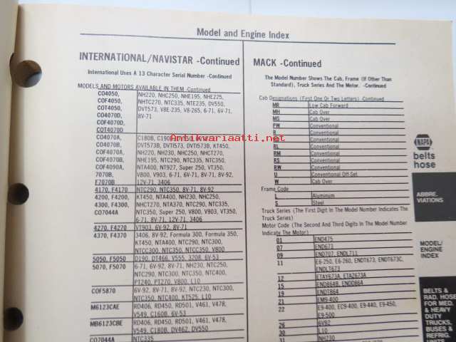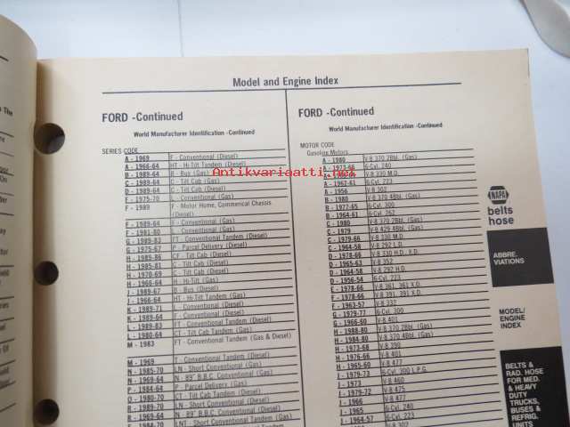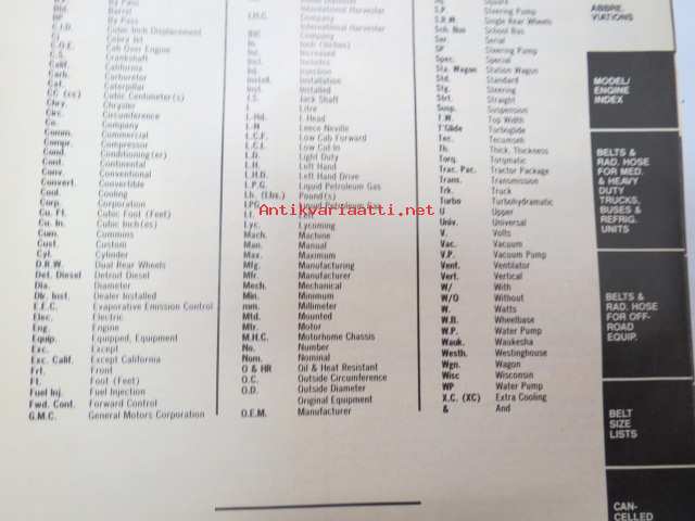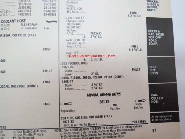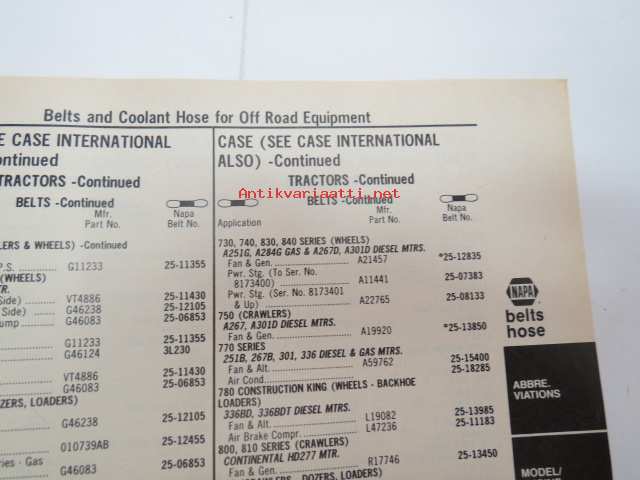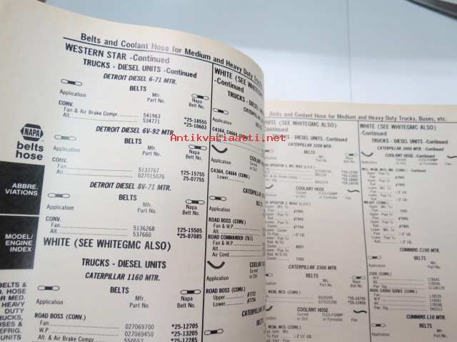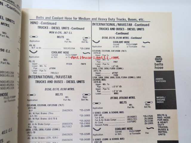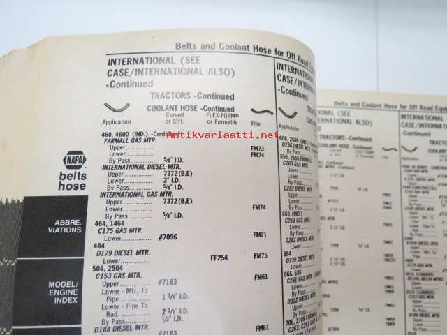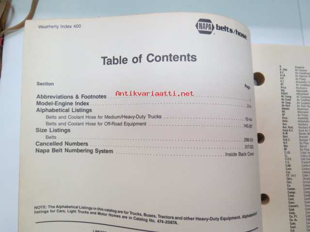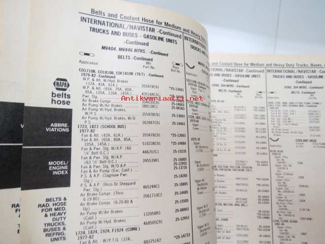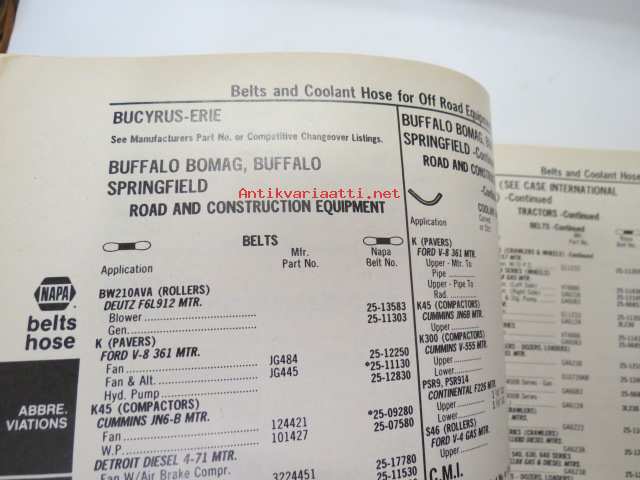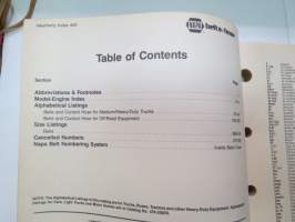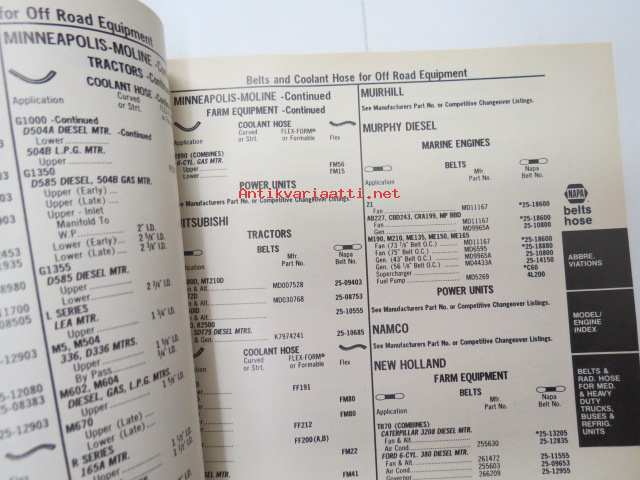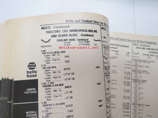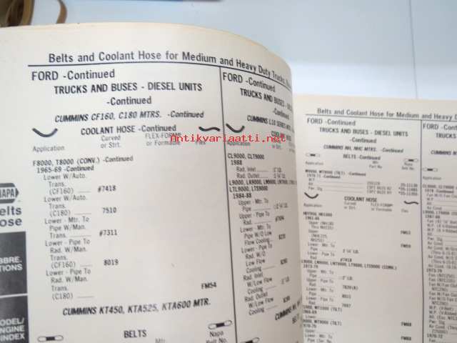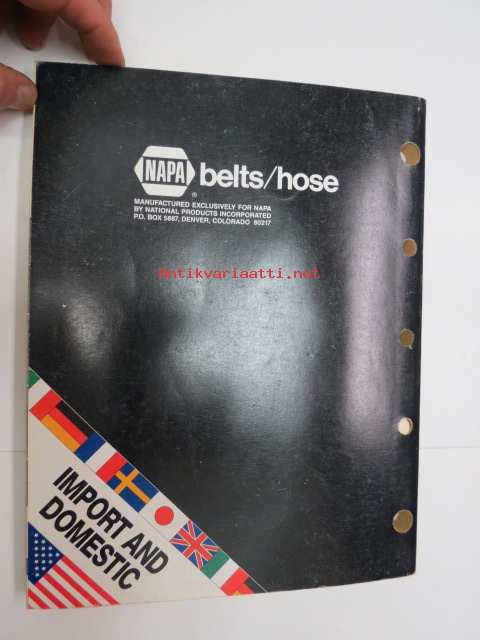 NAPA belts / hose Catalog nr 474-2089B February 1989 -luettelo remmeistä ja letkuista