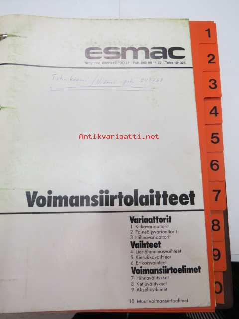 Esmac - Voimansiirtolaitteet - Variaattorit, vaihteet, voimansiirtoelimet -kansio, jossa esitteitä, teknistä tietoa, ym. -binder with brochures etc.