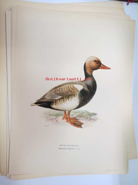 Punapäänarsku - rödhufvad Dykand -Svenska fåglar, von Wright, 1927-29, painokuva -print