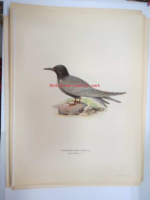 Mustatiira - svart tärna -Svenska fåglar, von Wright, 1927-29, painokuva -print