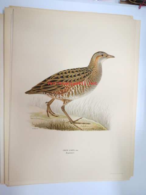 Ruisrääkkä - ängsknarr -Svenska fåglar, von Wright, 1927-29, painokuva -print