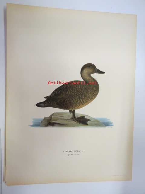 Mustalintu - sjöorre -Svenska fåglar, von Wright, 1927-29, painokuva -print