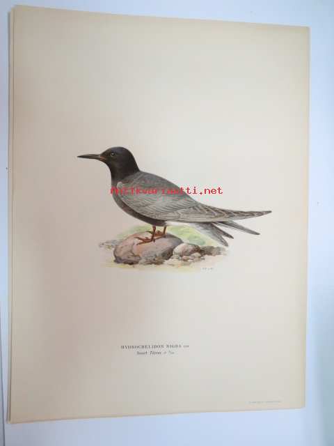 Mustatiira - svart tärna -Svenska fåglar, von Wright, 1927-29, painokuva -print