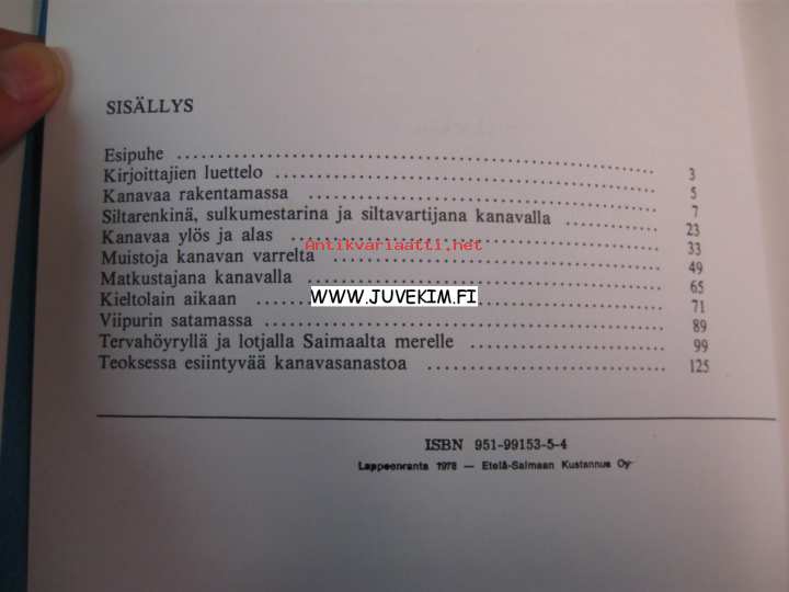 | Saatavilla | 1 kpl | | Julkaisuvuosi | 1978 | | Sivuja | 128 | | Kunto | K3 | | Sidonta/painoasu | Sidottu (kansipaperit) | | ISBN | 951-99153-5-4 | | Kielet | Suomi |