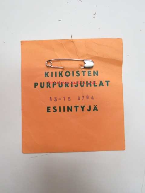 Kiikoisten purpurijuhlat - Esiintyjä -lippu / osallistujamerkki -artist´s ticket / tag