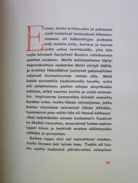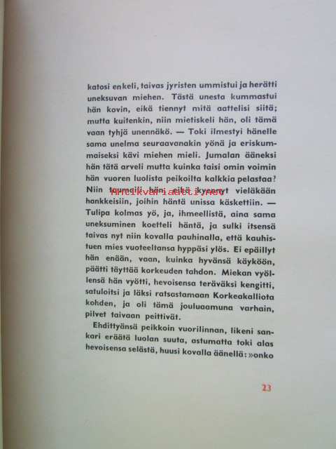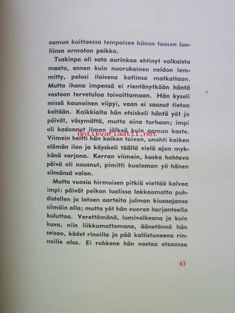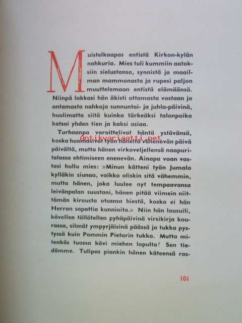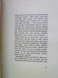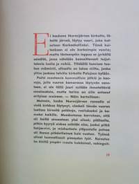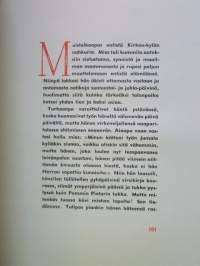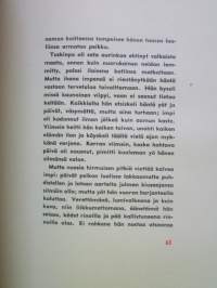 | Saatavilla | 1 kpl | | Julkaisuvuosi | 1947 | | Sivuja | 126 | | Painos | 1. | | Kunto | K2 | | Sidonta/painoasu | Kuvitettu kovakantinen | | Kielet | Suomi |