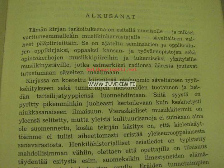 | Saatavilla | 1 kpl | | Julkaisuvuosi | 1969 | | Sivuja | 180 | | Painos | 6. | | Kunto | K2 | | Sidonta/painoasu | Sidottu (kovak.) | | Kielet | Suomi |