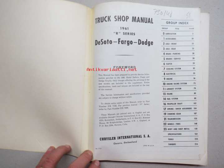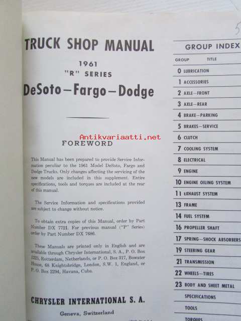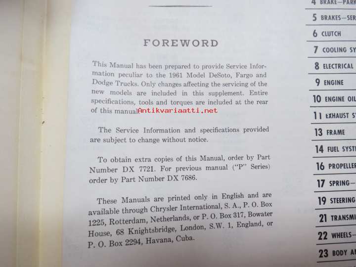 Dodge De Soto Fargo - Truck Shop Manual 1961 "R-series"
