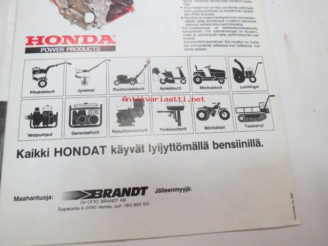 Honda pihatraktorit ja jyrsimet 1990 -myyntiesite / brochure