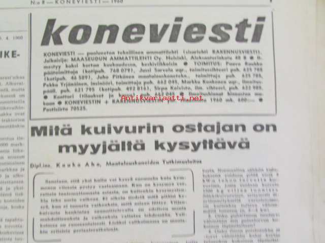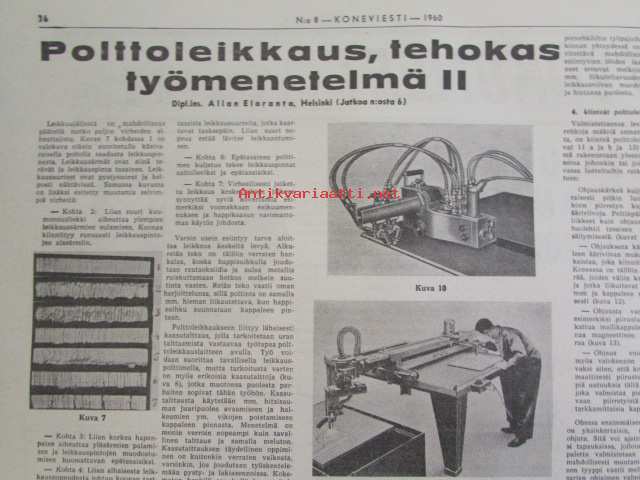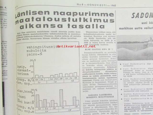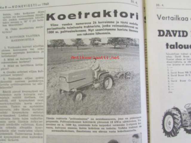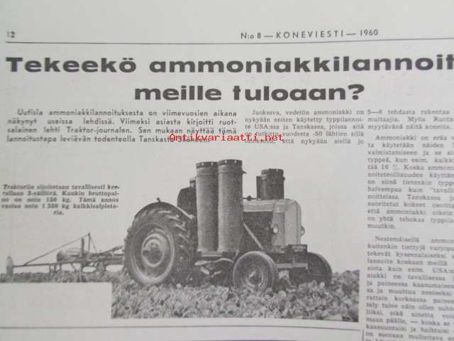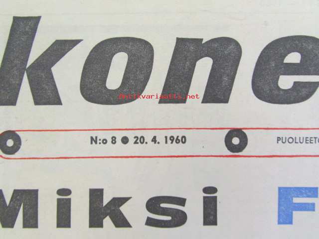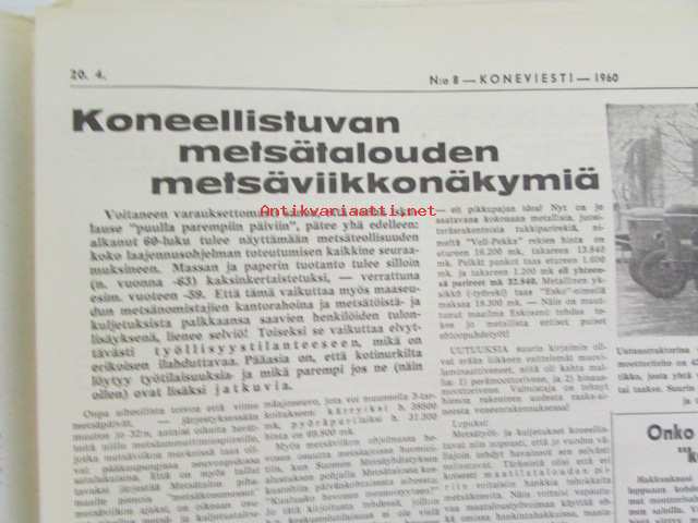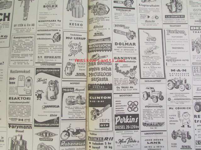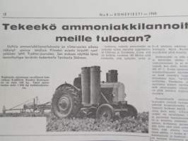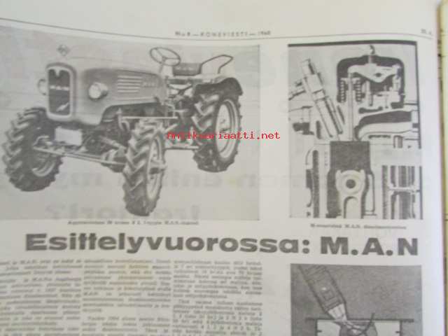 Koneviesti 1960 nr 8, sisältää mm. seur. artikkelit / kuvat / mainokset; Esittelyssä M.A.N., Lannoitus- ja kylvökoneet McCormick ja Allis Chalmers, Kevään 60 mopedia Tekniset tiedot ja hinnat, katso sisältö kuvista tarkemmin.26 x 33 cm.