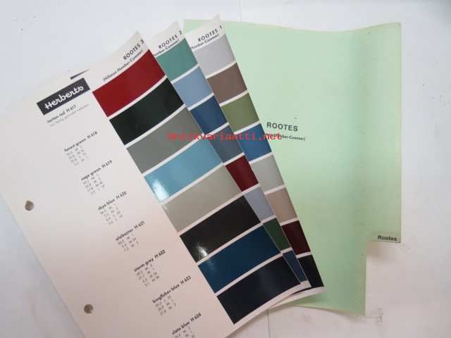 Rootes - 3 sivua Standox / Herberts värimalleja -colour samples