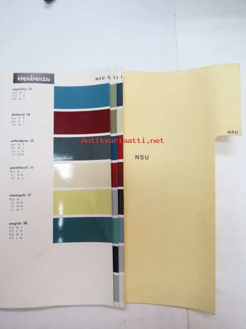 NSU - 3 sivua Standox / Herberts värimalleja -colour samples