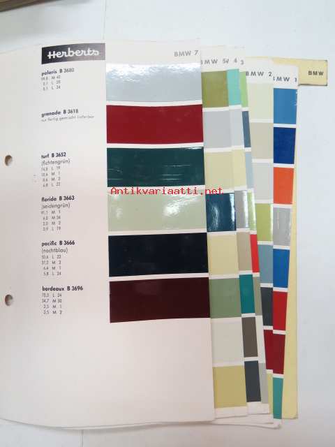 BMW - 7 sivua Standox / Herberts värimalleja -colour samples