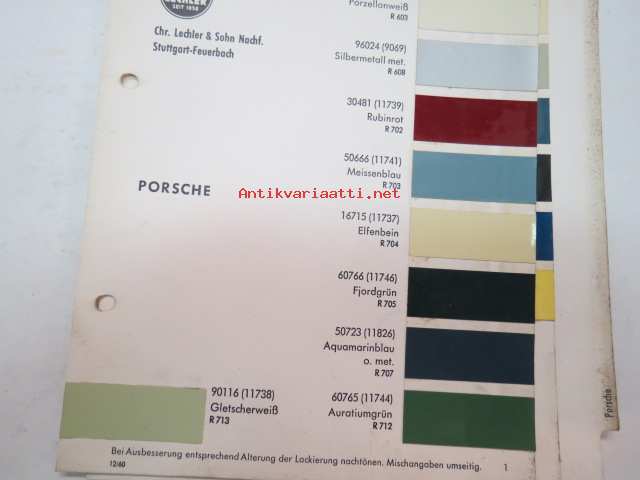 Porsche - 2 sivua Lack-Lechler - Chr. Lechler & Sohn Nachf. värimalleja -colour samples