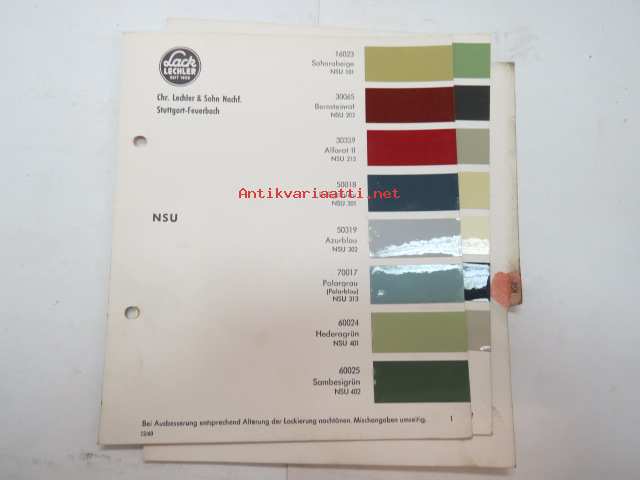 NSU - 2 sivua / pages Lack-Lechler - Chr. Lechler & Sohn Nachf. värimalleja -colour samples