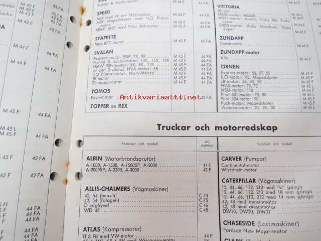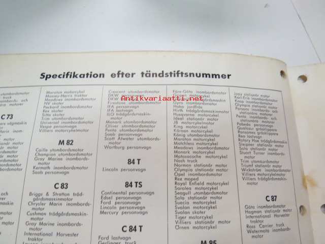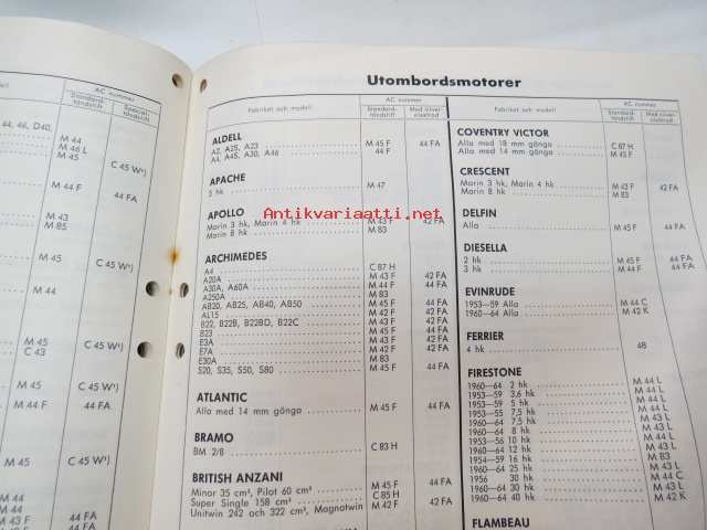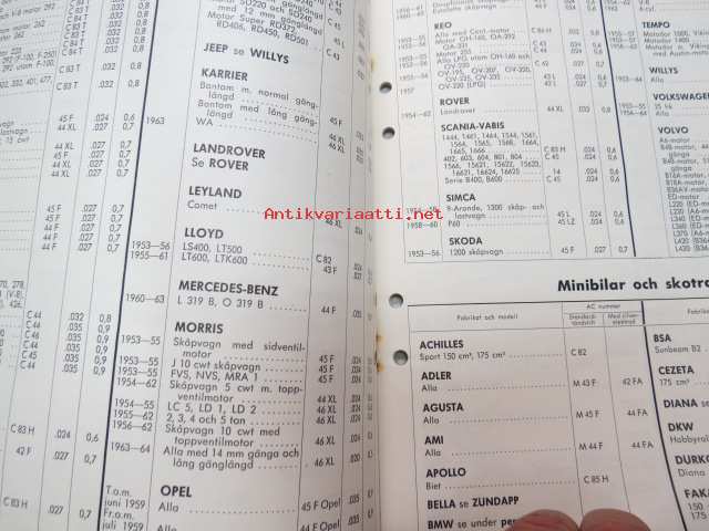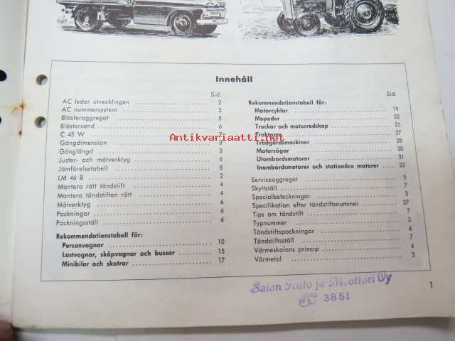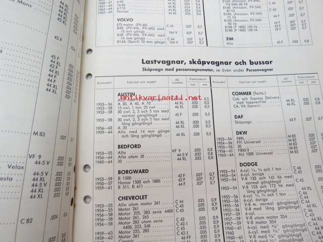 AC tänsstift 1964 -sytytystulppaluettelo /spark plug catalog