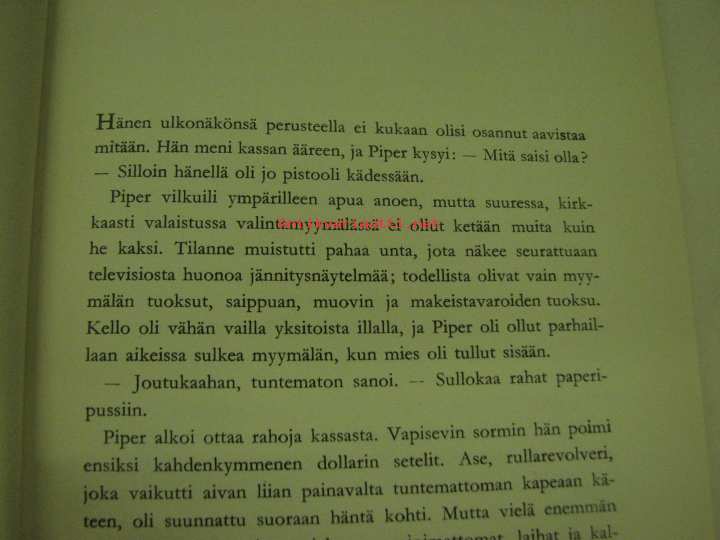 | Saatavilla | 1 kpl | | Julkaisuvuosi | 1961 | | Sivuja | 231 | | Painos | 2. | | Kunto | K3 | | Sidonta/painoasu | Sidottu (kovak.) | | Kielet | Suomi |