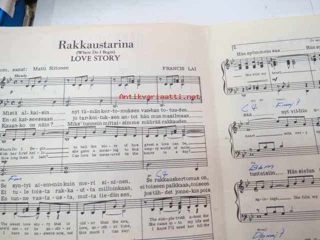 Rakkaustarina -nuotit / notes