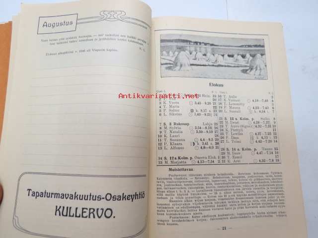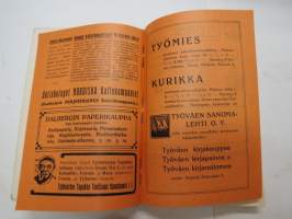 Työväen Kalenteri III (3.) 1910, sis. mm. seur. artikkelit; Kansikuvitus Sallinen, Kalenteritietoja, Markkinapäivät, Tietoja posti- ja rautatielähetyksistä,