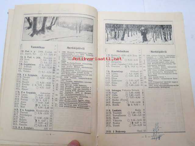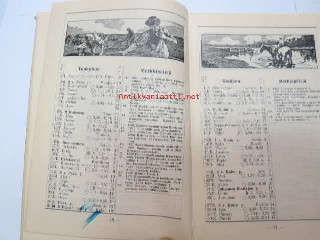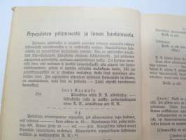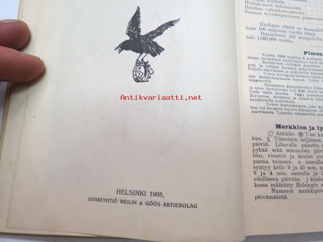 Työväen Kalenteri II (3.) 1909, sis. mm. seur. artikkelit / kuvat / mainokset; Kalenteritietoja, Markkinapäivät, Tietoja posti- ja rautatielähetyksistä,