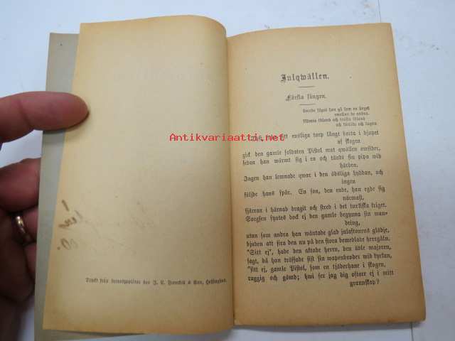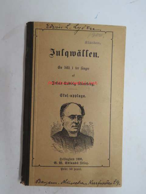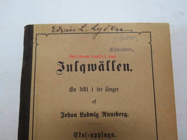 Julqwällen. En dikt i tre sånger af Johan Ludvig Runeberg, ex Edvin Lydén 1900, signeerannut kirjan Münchenissä ollessaan) -novel