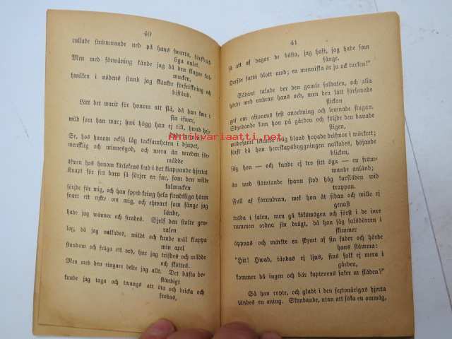 | Saatavilla | 1 kpl | | Julkaisuvuosi | 1898 | | Sivuja | 51 | | Kunto | K3 | | Sidonta/painoasu | Kuvitettu kovakantinen | | Kielet | Ruotsi |