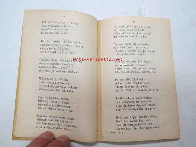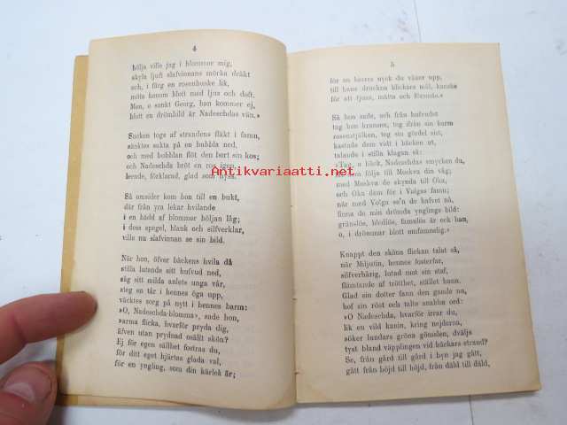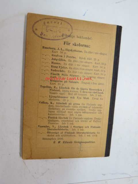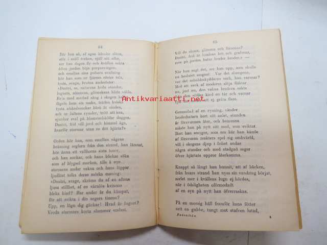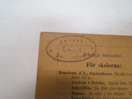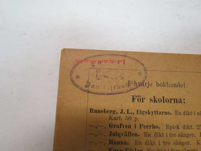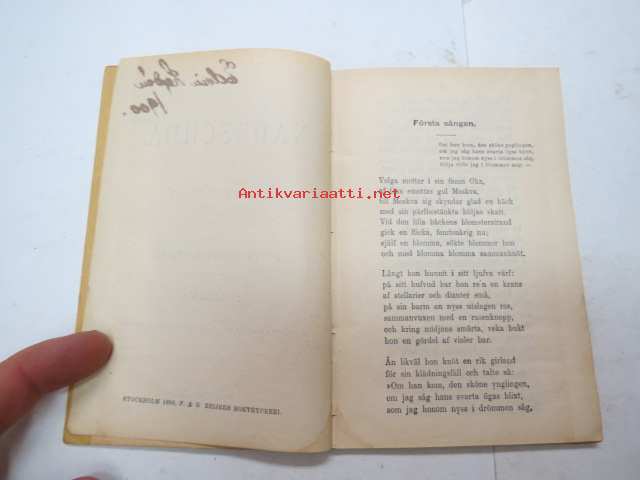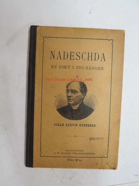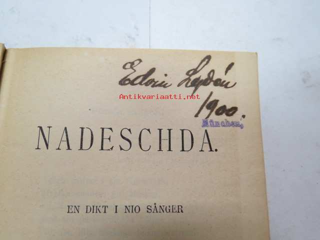 Nadeschda. En dikt i nio sånger af Johan Ludvig Runeberg, ex Edvin Lydén 1900, signeerannut kirjan Münchenissä ollessaan, takakannessa erikoinen "Farväl" -leima -novel