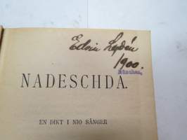 Nadeschda. En dikt i nio sånger af Johan Ludvig Runeberg, ex Edvin Lydén 1900, signeerannut kirjan Münchenissä ollessaan, takakannessa erikoinen "Farväl"