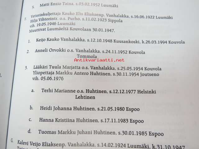 Ahti Kopperi, Sukuseura Vanhalakka-Sydänmaanlakka-Lakka ry, 200119 x 25 cm.