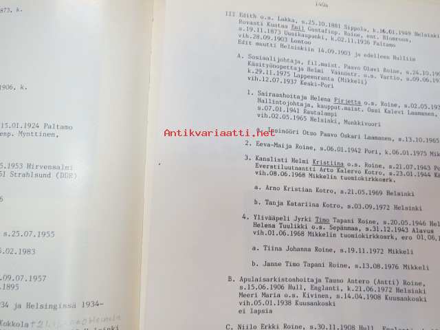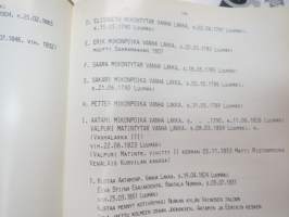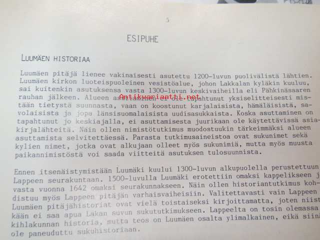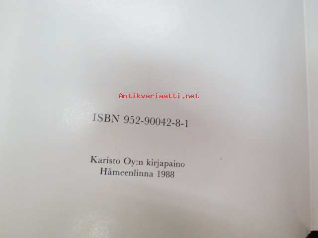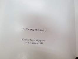 | Saatavilla | 1 kpl | | Julkaisuvuosi | 1988 | | Sivuja | 262 | | Painos | 1. | | Kunto | K3 | | Sidonta/painoasu | Sidottu (kovak.) | | ISBN | 952-90042-8-1 | | Kielet | Suomi |